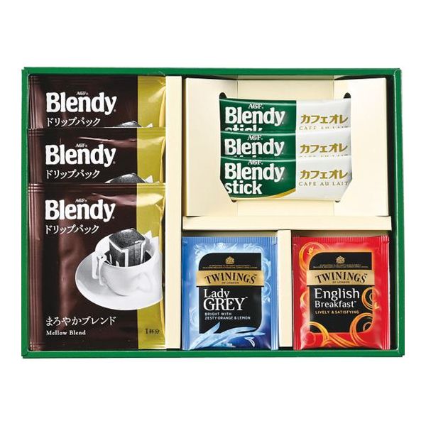 商品内容:●AGFブレンディ(ドリップコーヒー7g・スティックカフェオレ10g)×各3、トワイニング紅茶(イングリッシュブレックファースト・レディグレイ)×各3●【賞味期間】製造日より(約)常温450日間●アレルギー【乳】●箱サイズ(約)26.5×20.3×2.8cm●箱重量(約)210g●梱包状態:化粧箱入 ※のし包装(ラッピング)はひとつずつ無料で致します。