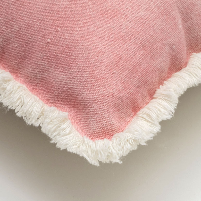 別売りヌードクッションはこちら > 【同シリーズ】ビスケットクッションはこちら > ユーズド感のあるような生地を使用し、ぐるっとフリンジで縁取りました。