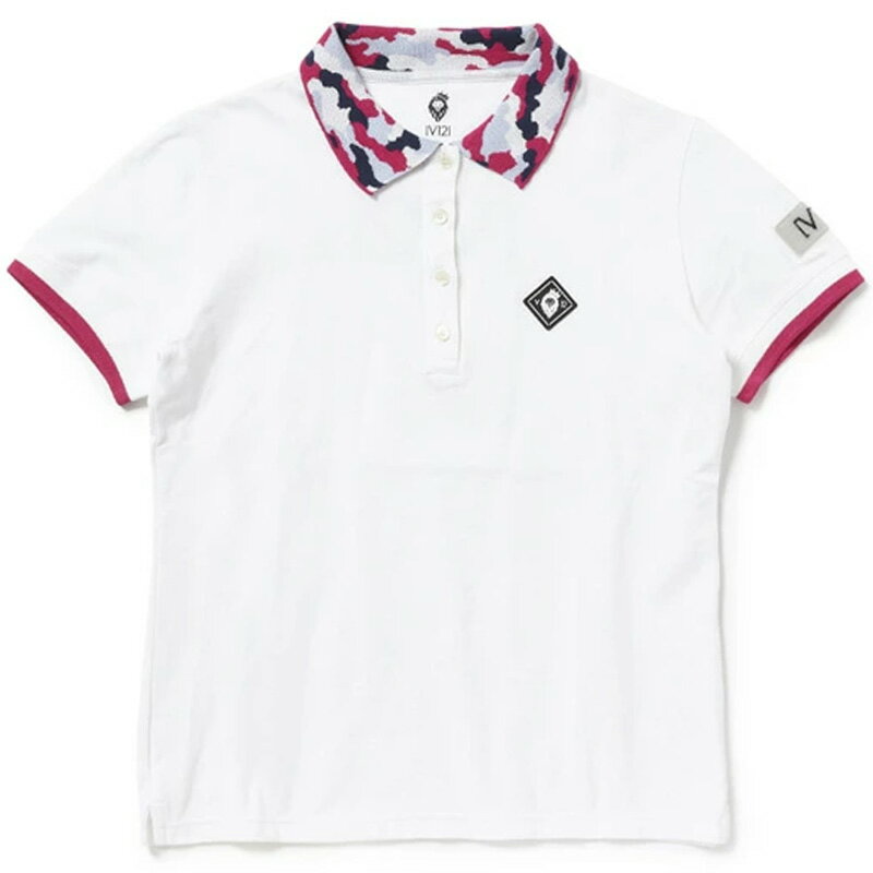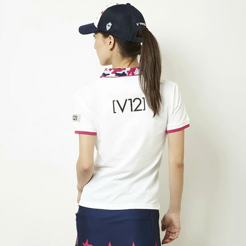 検索用:V12 VTWELVEヴィトゥエルヴ ブイトゥエルブ ゴルフウエアゴルフウェアレディースウエアレディースウェアレディースレディス女性用トップス半そでポロシャツカモフラージュ迷彩柄メーカー希望小売価格はメーカーカタログに基づいて掲載していますポロシャツの襟部分をV12オリジナルの迷彩柄で表現した1枚。