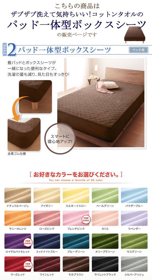 ザブザブ洗える20色 タオル地 パッド一体型ボックスシーツ (ダブル) 送料無料敷きパッド 敷パッド パッド 一体型 ボックスシーツ ベッドカバー マットレスカバー カバー シーツ タオル地 20色 洗える 新生活 arco
