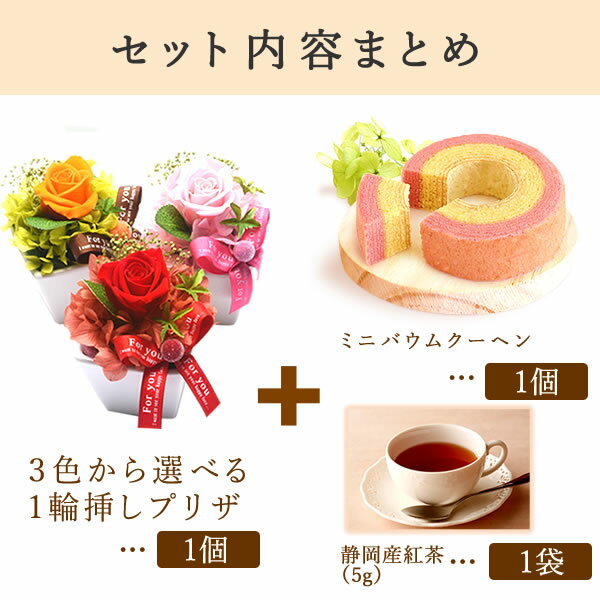 母の日 プレゼント 花以外 ギフト バラ お菓子 プリザーブドフラワー バウムクーヘン 送料無料 スイーツ ギフトセット 【静岡 AA】