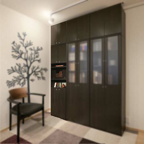 奥深下扉付き書庫 大容量本棚 木製書棚 M3 【オーダー収納】DVD コミックなどの収納に 日曜大工 奥深下扉付き書庫 奥行40cm高さ232〜241cm幅60〜70cm 標準棚板(厚さ1.7cm) 奥深下扉付き書庫